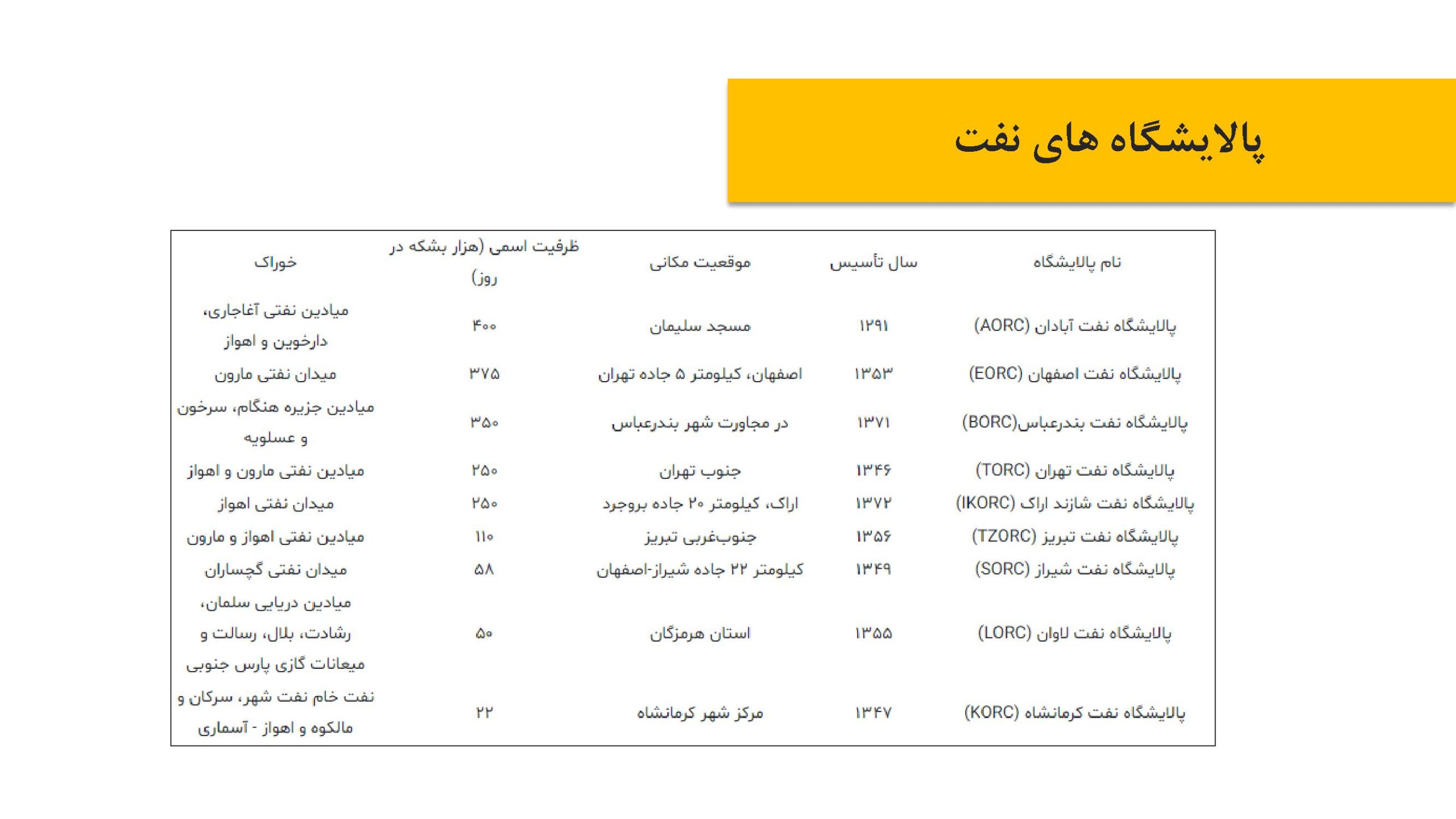 - آشنایی با پالایشگاه های کشور و میادین نفتی